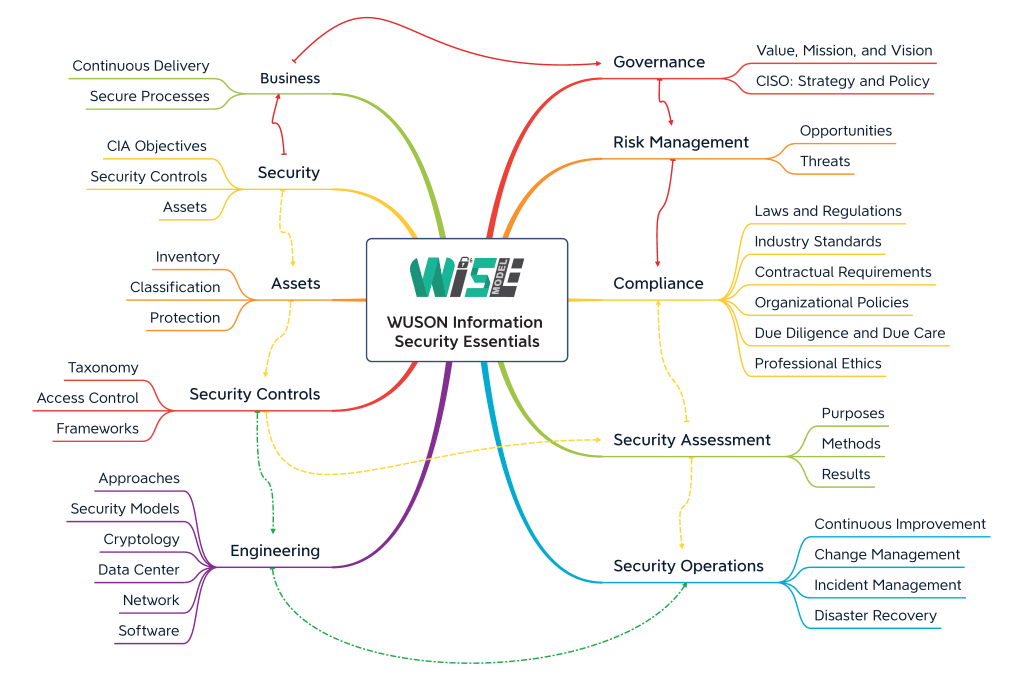 WISE Model是WUSON原創的資安基礎觀念模型,正式的英文名稱是WUSON Information Security Essentials (WISE)–A Cybersecurity Conceptual Model。